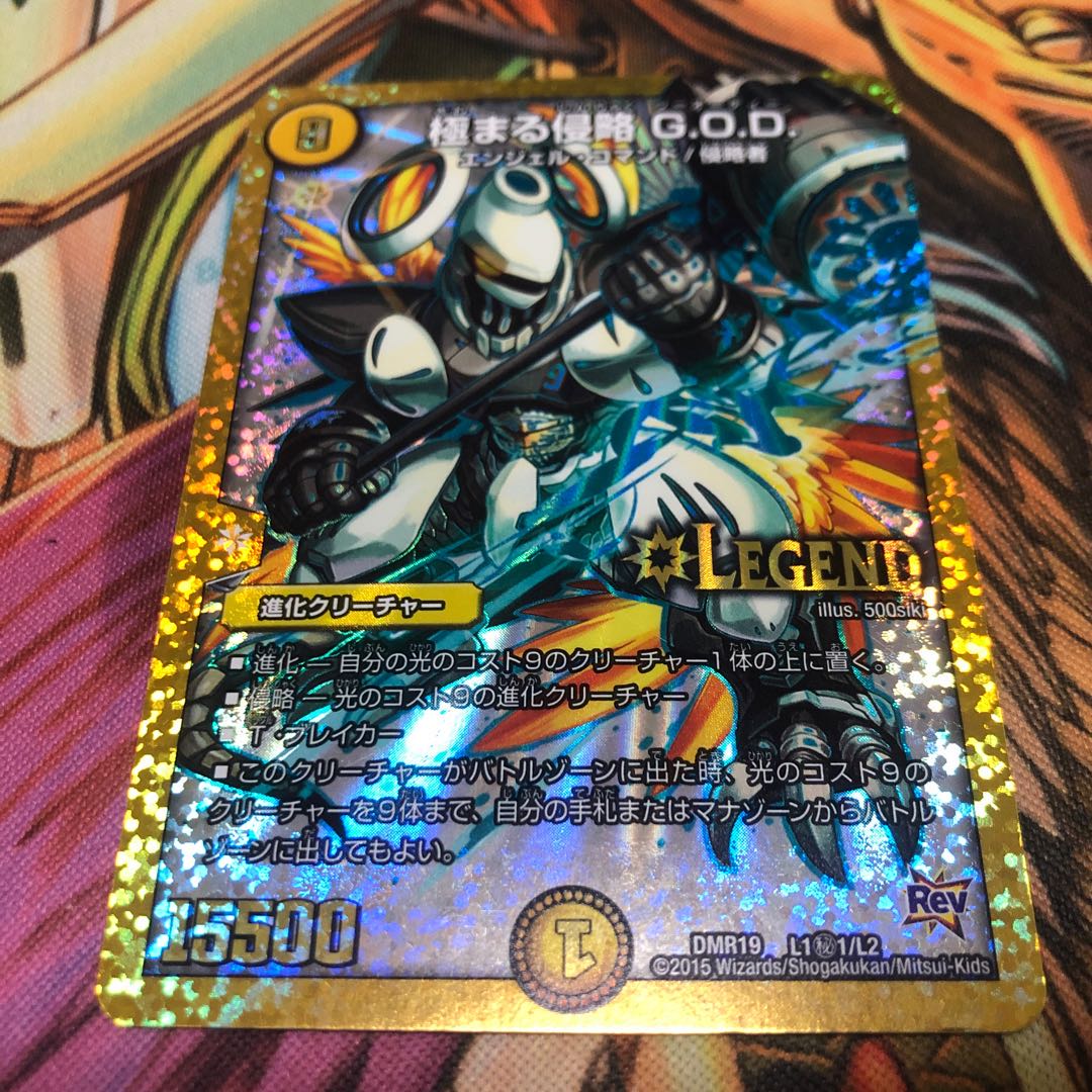 タイトルDuelMasters 極まる侵略 GOD DMR19 L1/L2 レジェンド 状態ランクB ぱっと見でキズ、欠け、めくれ、ヘコミ、汚れ等が確認できる程度のお品です。「極まる侵略G.O.D.」入れて 強化してみました。 「極まる侵略G.O.D.」を 使うためのポイントは2つ 一つは少しでも早くマナを9にする。 一つはコスト9の進化クリーチャーで 攻撃をして侵略することです。 と言うわけで3/11/ · そのまま《極まる侵略GOD》に侵略して大量展開を行い、相手のカードプレイを制限して殴り切ることを目的としたデッキです。 目指すものが単純明快であり、初心者の方でも使いやすいデッキタイプだといえます。 《極まる侵略GOD》を出せれば勝利は確定的ですが、それまでは相手を妨害する手段が全くない(《超九極チュートピア》を出せるターンは《極まる